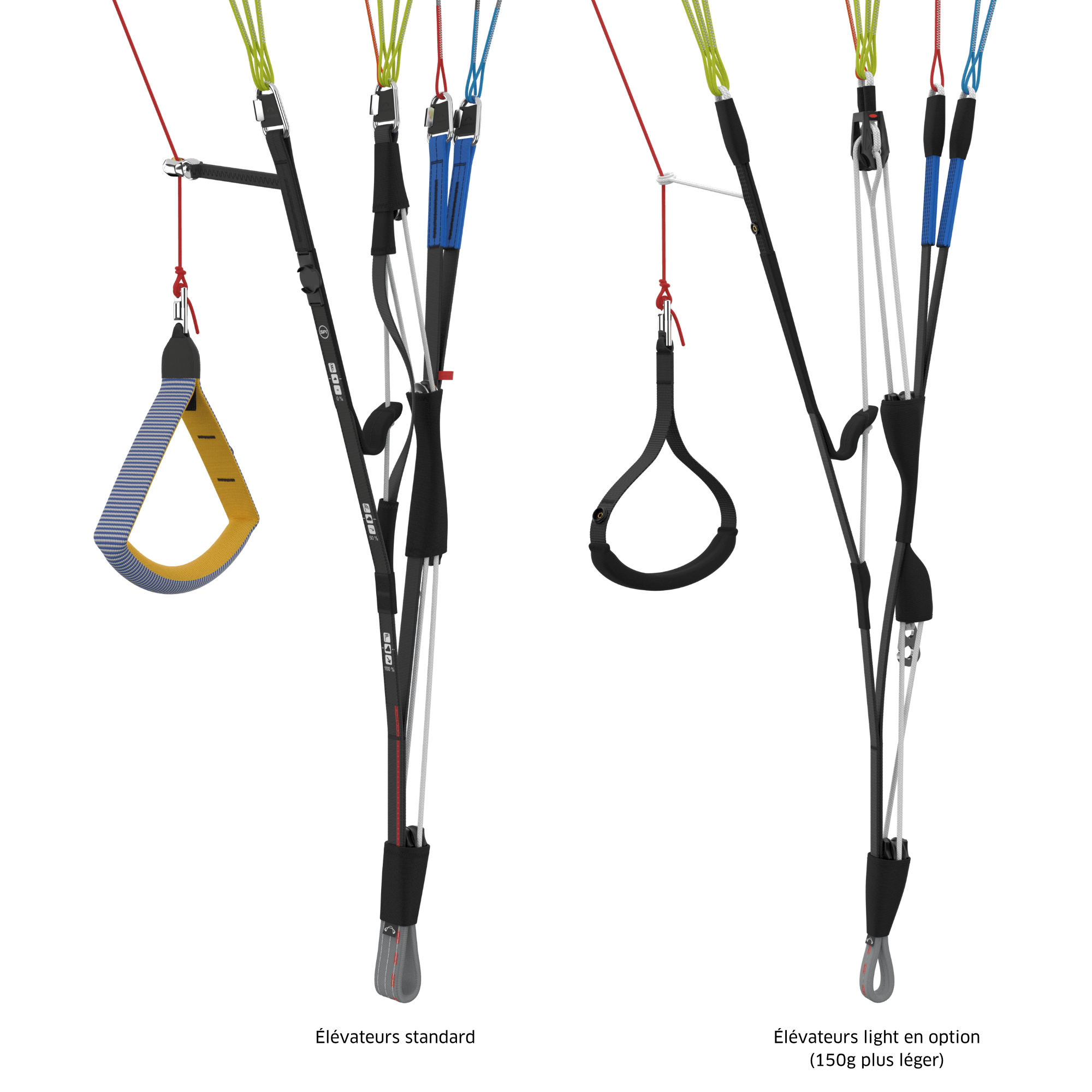 Non, une réduction de poids aussi marquée ne serait pas possible avec cette seule mesure. La différence du tissu de 27 g sur l’intrados représente, selon la taille, environ 150 g, soit même pas un quart de l'économie totale. La IOTA DLS est jusqu'à 700 g plus légère que sa prédécesseure lorsque les élévateurs légers en option sont utilisés.