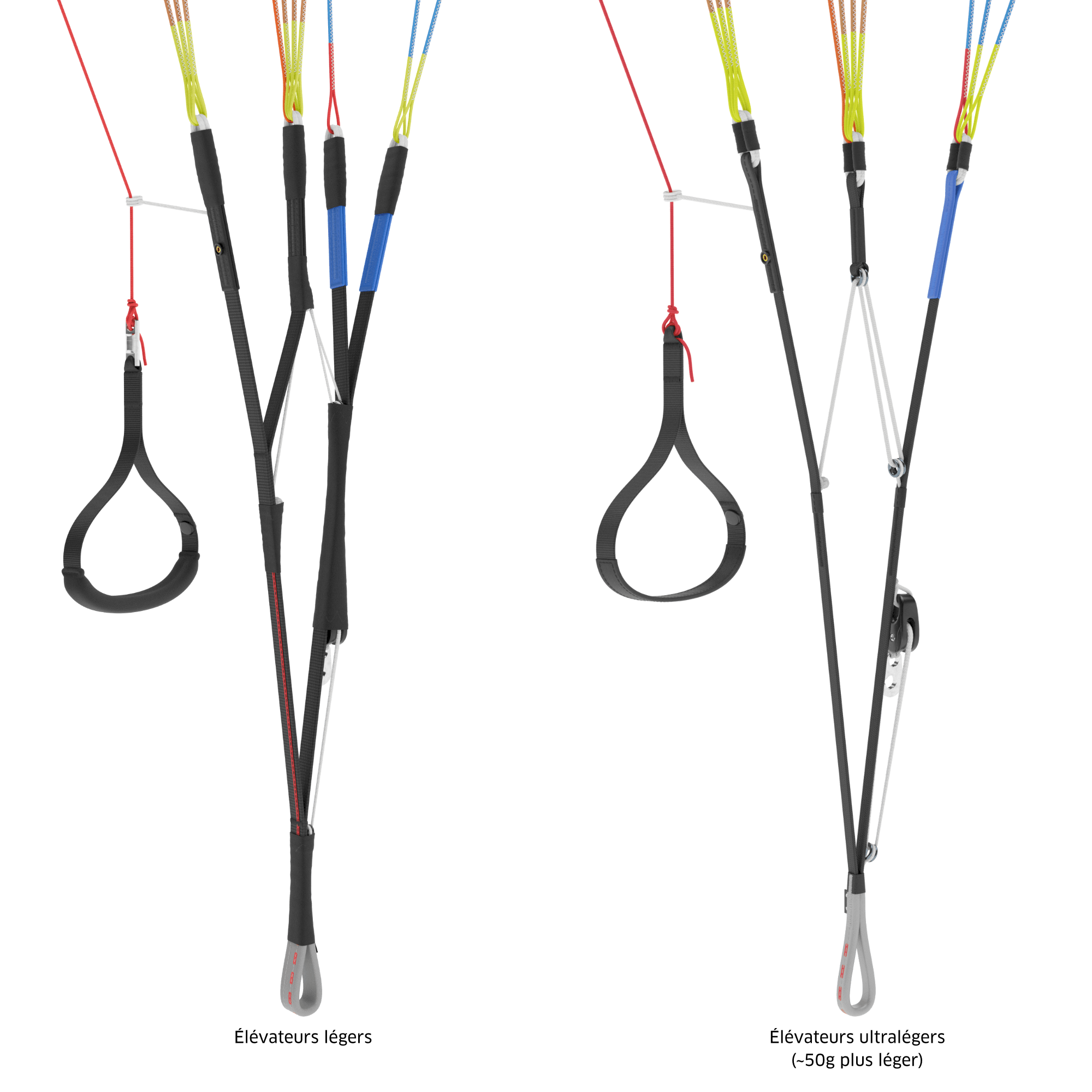 La taille 14 m² est équipée de série avec les élévateurs ultralégers. Pour les modèles de 16 et 18 m², ceux-ci peuvent être commandés en option.